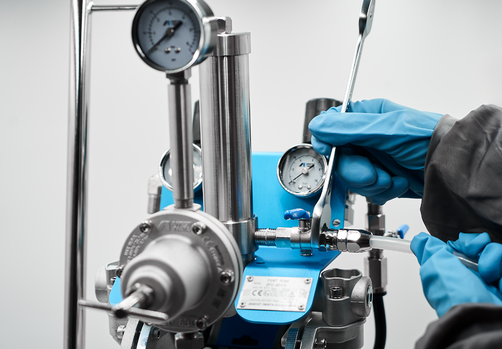 - Pull the spray gun trigger without engaging the atomizing air and let the cleaning liquid circulate for a few minutes. Once the cleaning process is complete, fully drain any remaining fluid from the system and stop the pump.